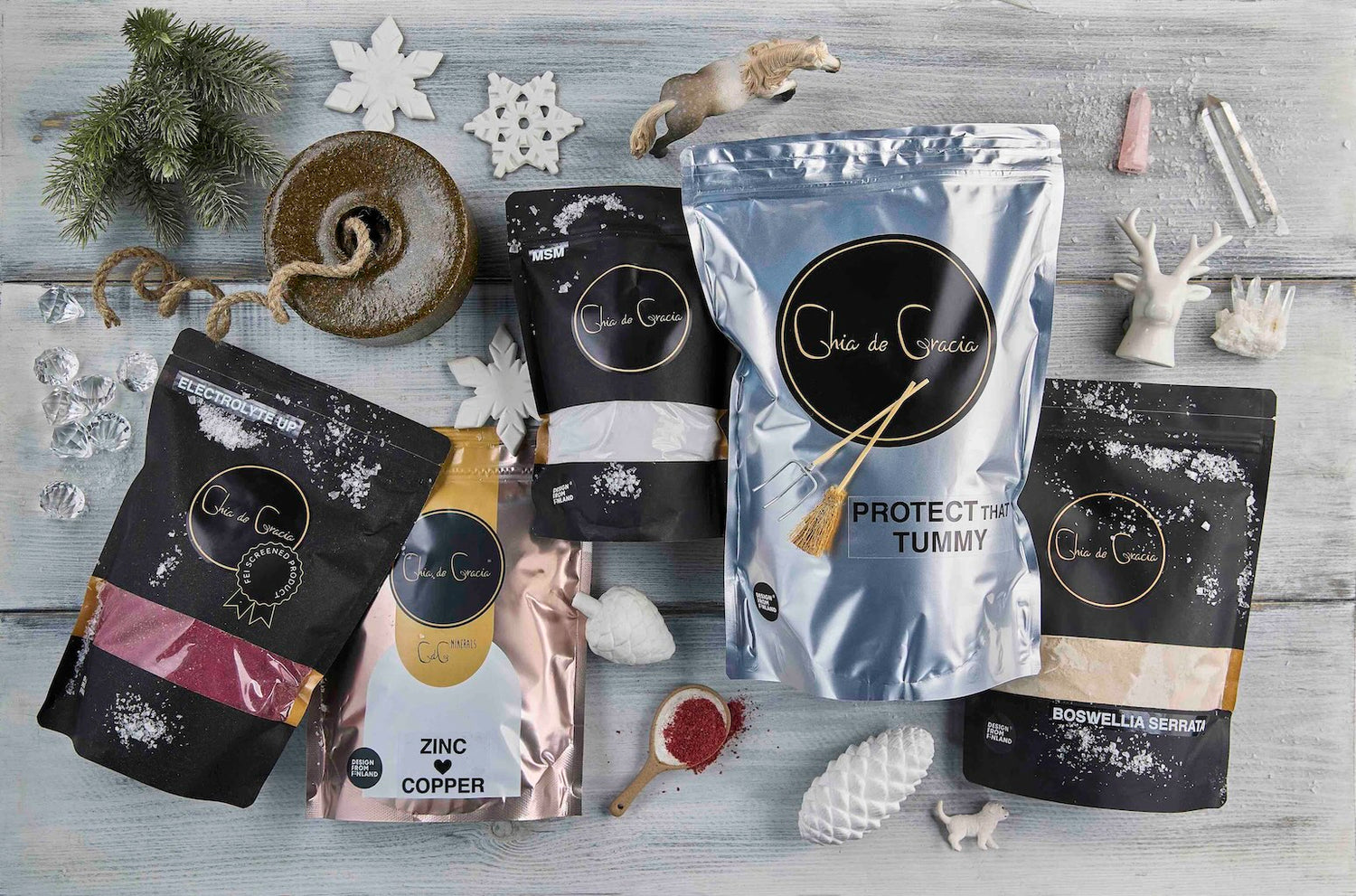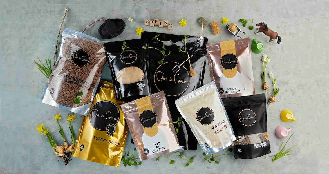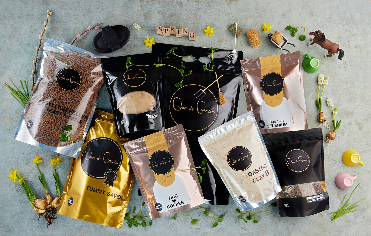 Chia de Gracia är en finländsk expert på naturlig utfodring. Chia de Gracias kvalitetsörter, örtblandningar samt övriga 100 % naturliga foderkomplement stöder på ett naturligt sätt hästars och hundars dagliga välmående utan tillsatser eller syntetiska komponenter.